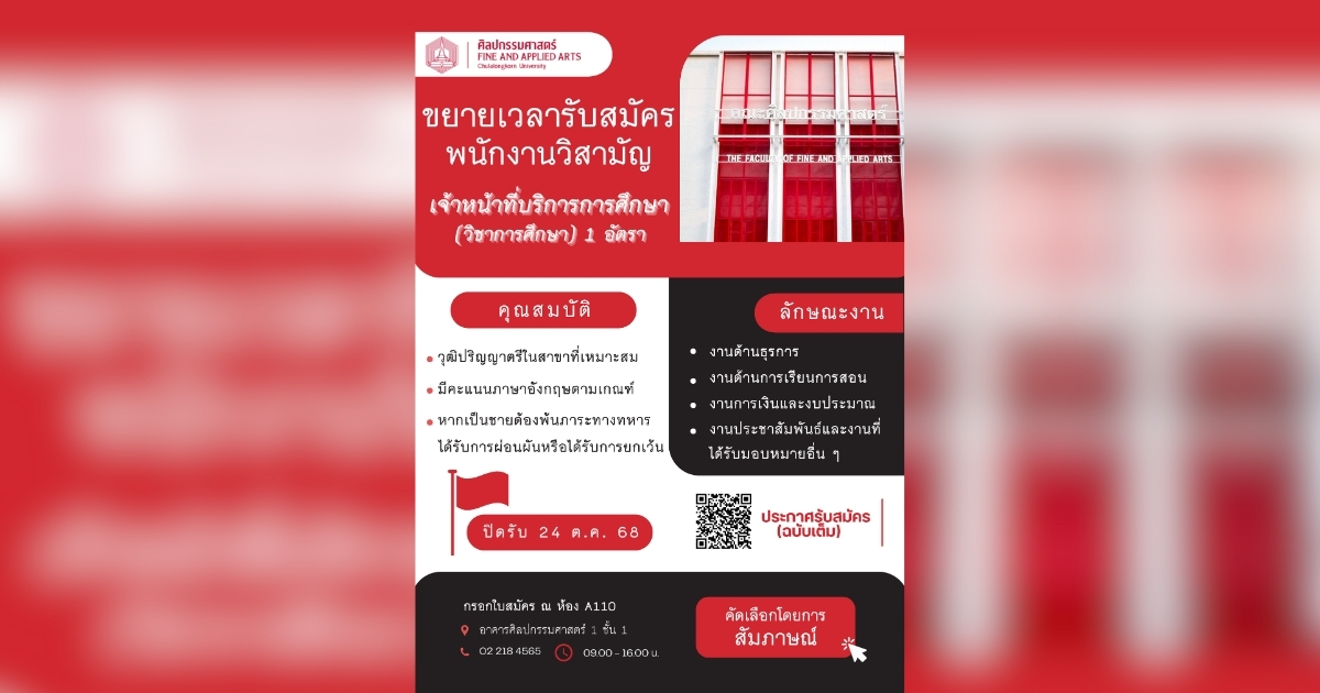 คณะศิลปกรรมศาสตร์ จุฬาลงกรณ์มหาวิทยาลัย ขยายเวลาการเปิดรับสมัครพนักงานวิสามัญ