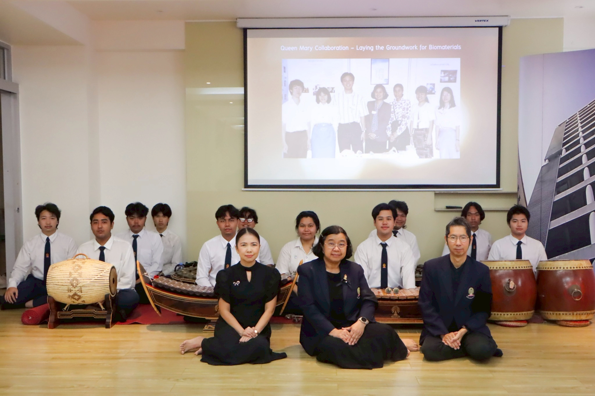 ศาสตราจารย์ ดร.ขำคม พรประสิทธิ์ คณบดีคณะศิลปกรรมศาสตร์ จุฬาลงกรณ์มหาวิทยาลัย รองศาสตราจารย์ ดร.ภัทระ คมขำ หัวหน้าภาควิชาดุริยางคศิลป์ และผู้ช่วยศาสตราจารย์ ดร.พัชรินทร์ สันติอัชวรรณ รองคณบดีฝ่ายบริหาร เข้าร่วมพิธีทำบุญถวายภัตตาหารเพลแด่พระสงฆ์ เนื่องในโอกาสครบรอบ 39 ปี แห่งการสถาปนาสถาบันวิจัยโลหะและวัสดุ จุฬาลงกรณ์มหาวิทยาลัย ในวันพฤหัสบดีที่ 13 พฤศจิกายน 2568 ณ ชั้น 11 อาคารวิทยาลัยปิโตรเลียมและปิโตรเคมี โดยมีนิสิตสาขาวิชาดุริยางคศิลป์ไทย ภาควิชาดุริยางคศิลป์ ร่วมบรรเลงปี่พาทย์พิธีในงานนี้ด้วย